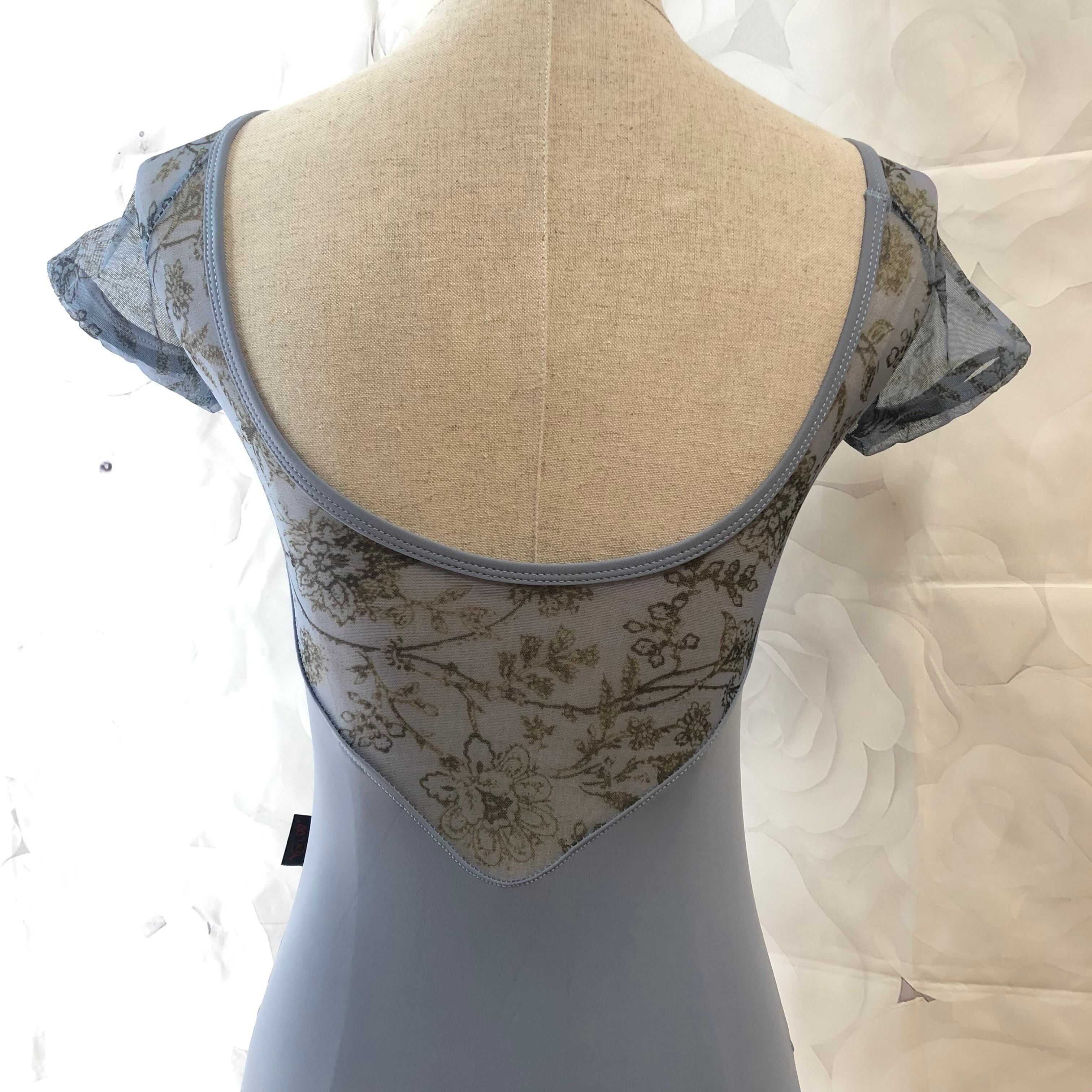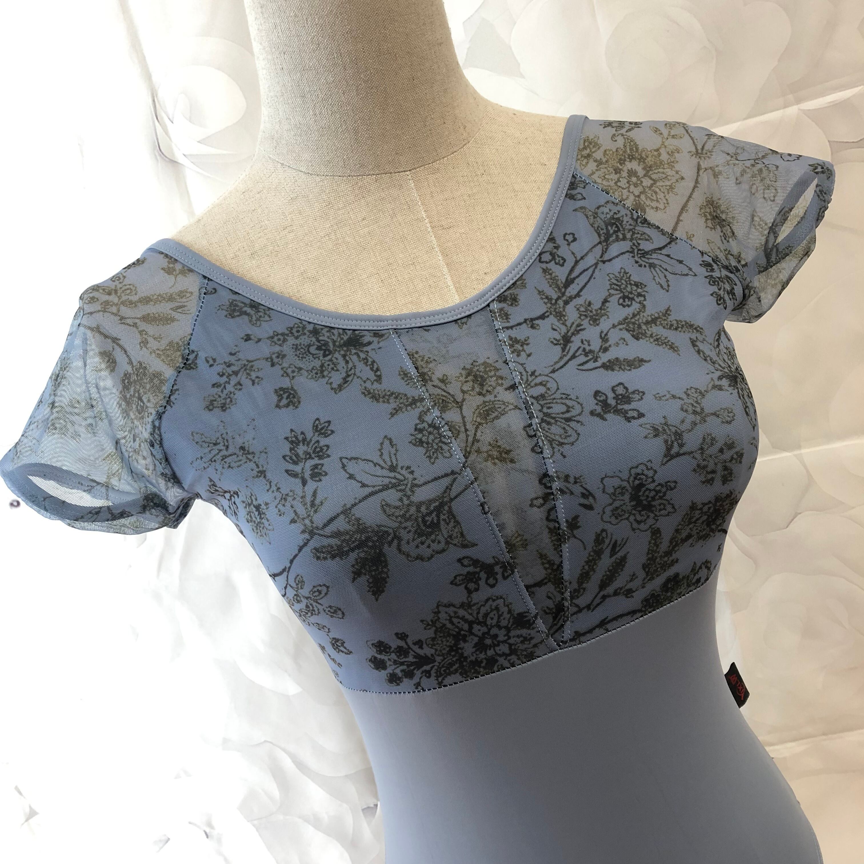 【再々入荷】フラワーモチーフ メッシュレオタード ブルー