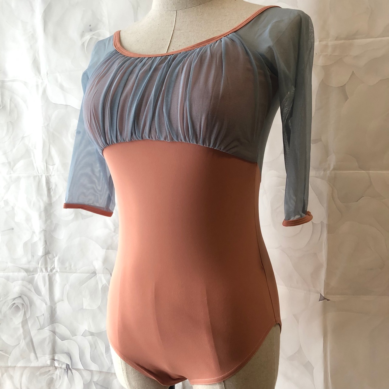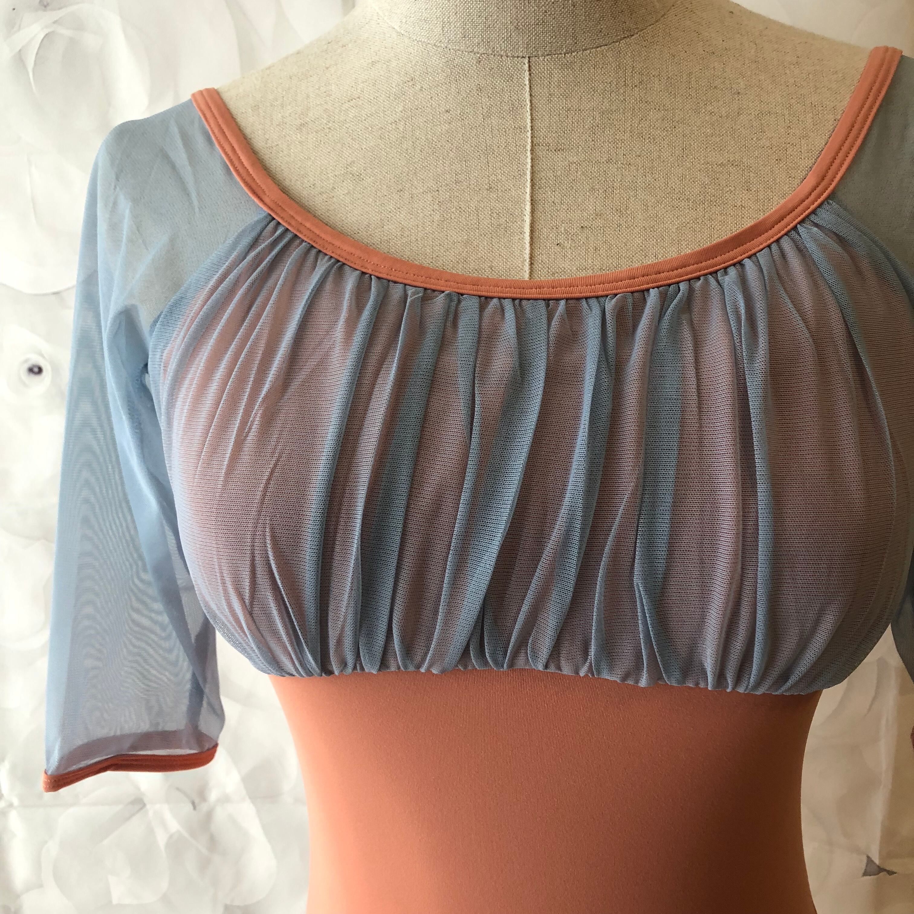 チュールレース レオタード ベビーブルー×コーラル
