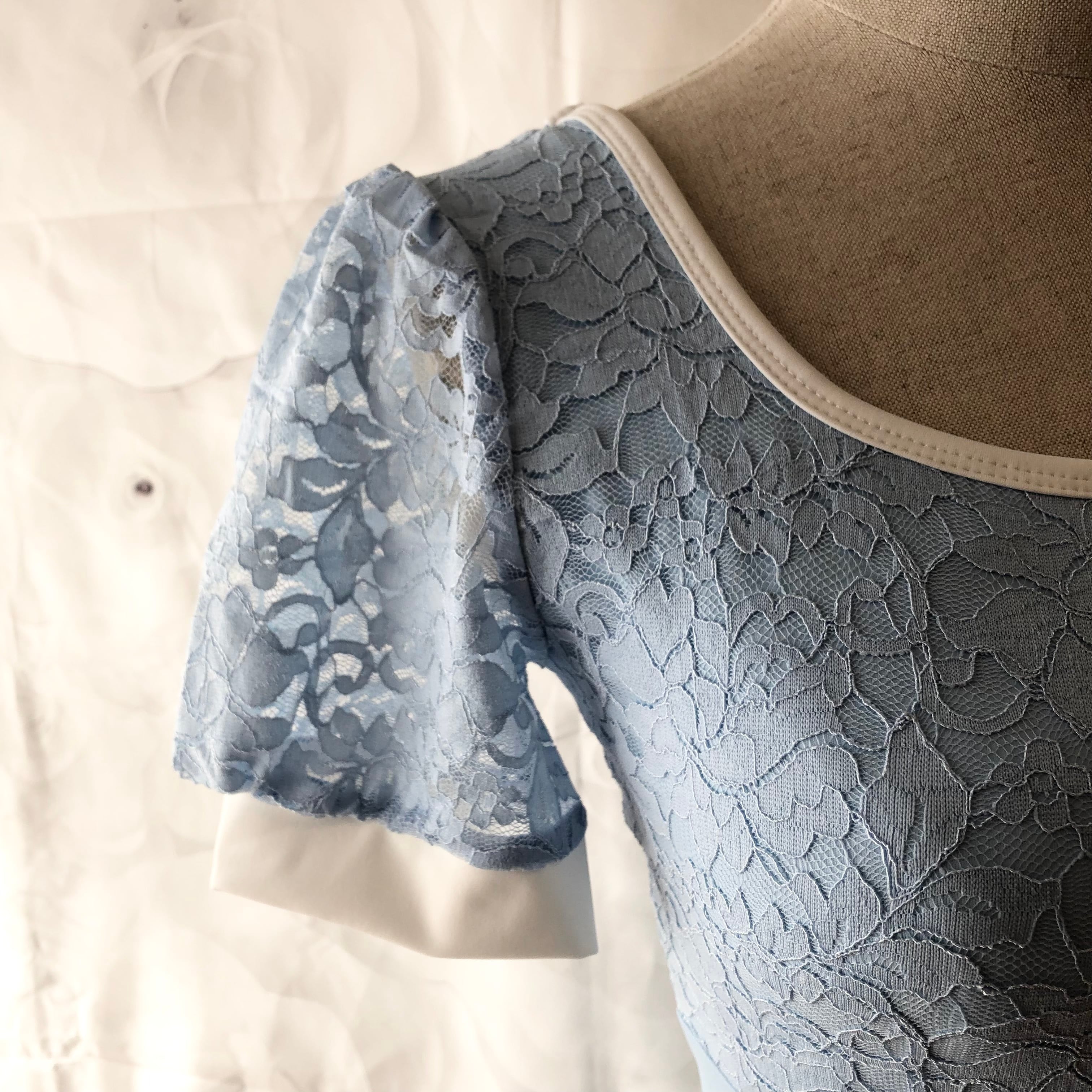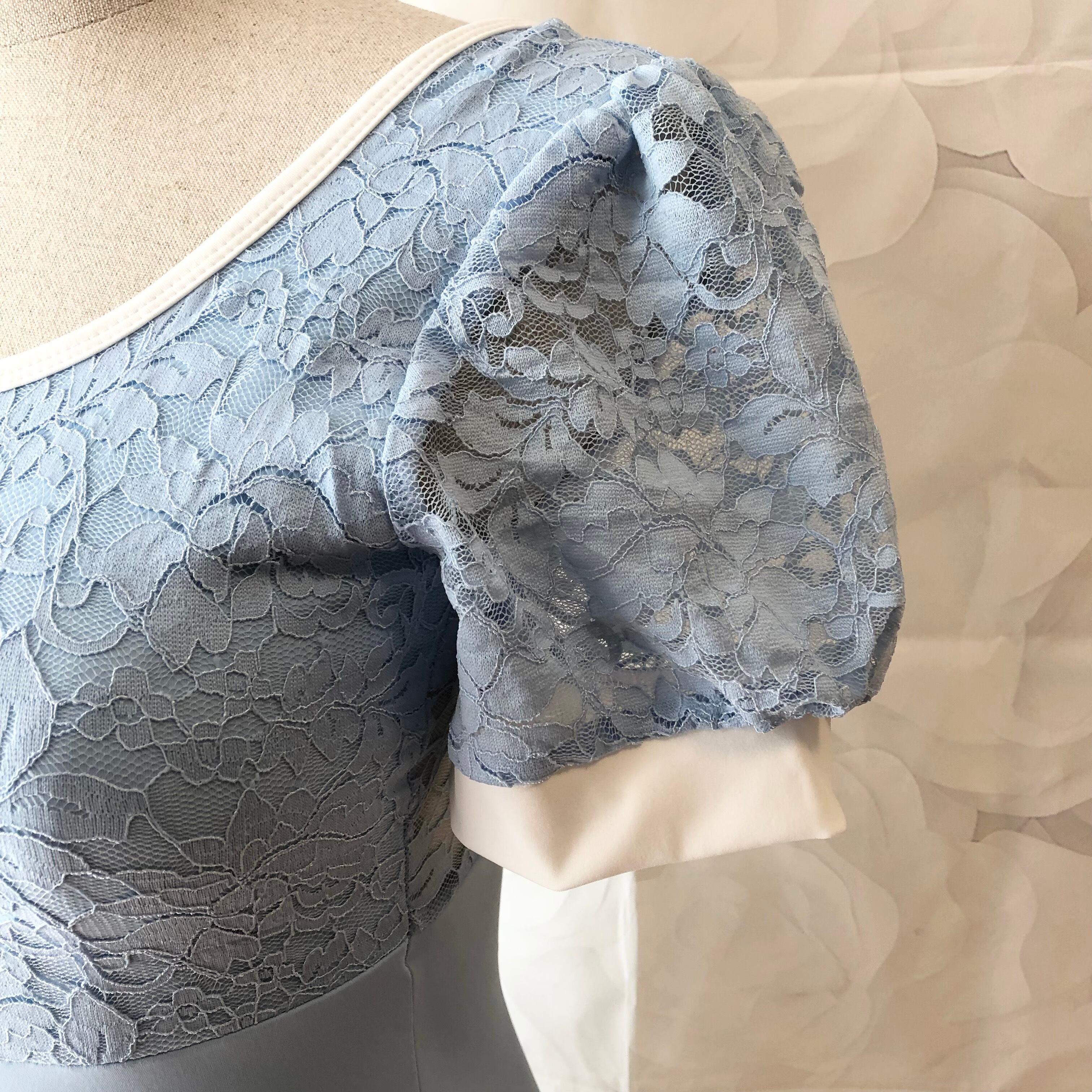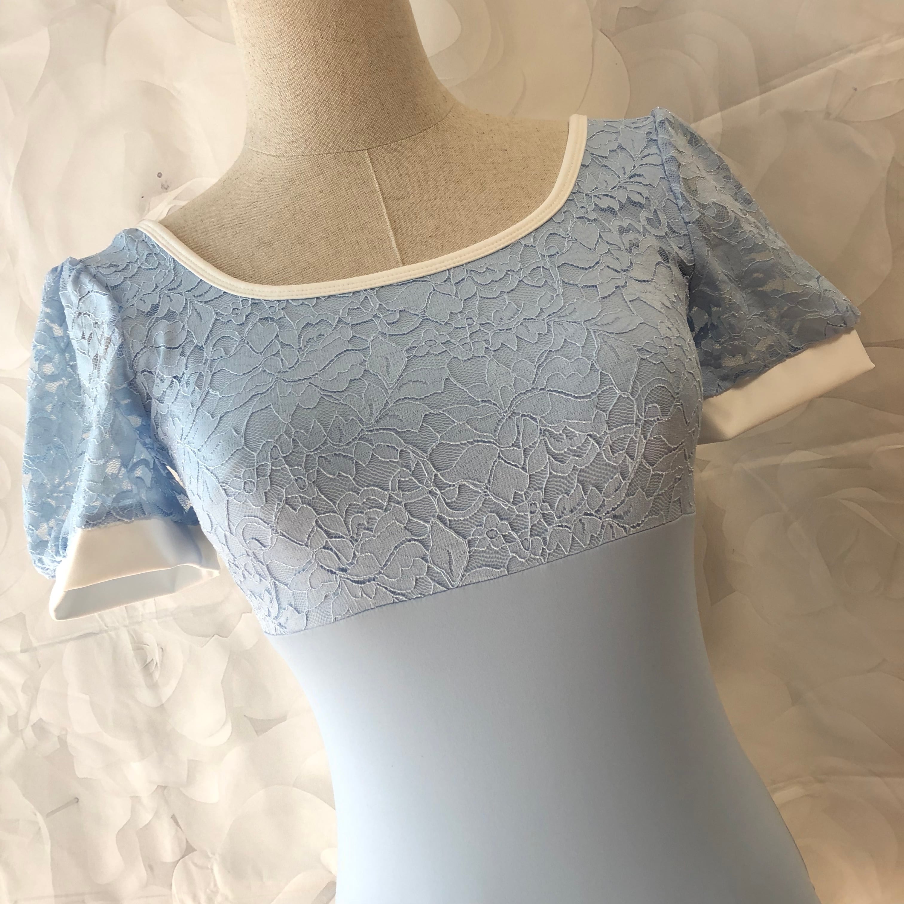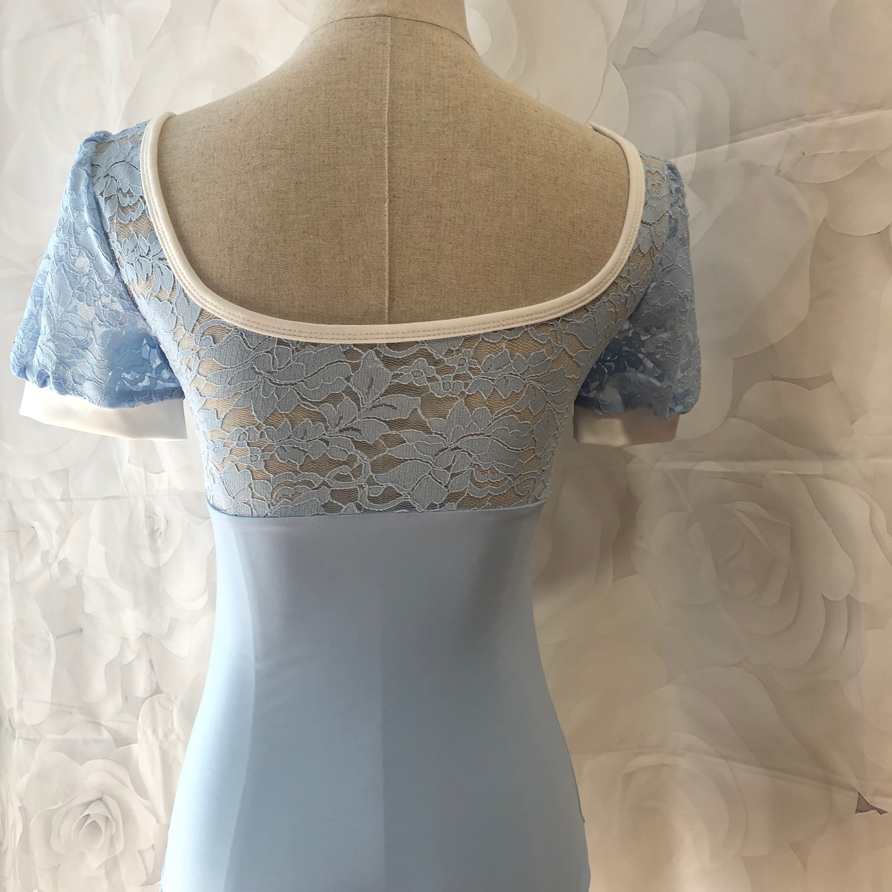 胸元と袖に花柄のレースをあしらった上品なレオタード。