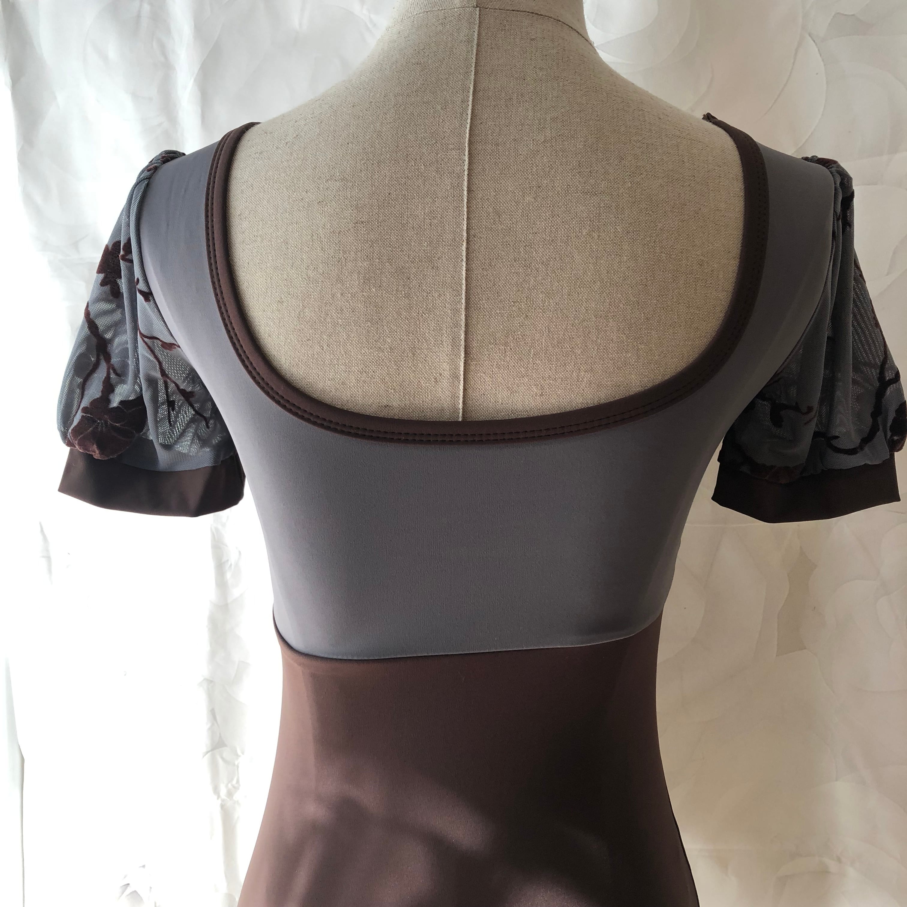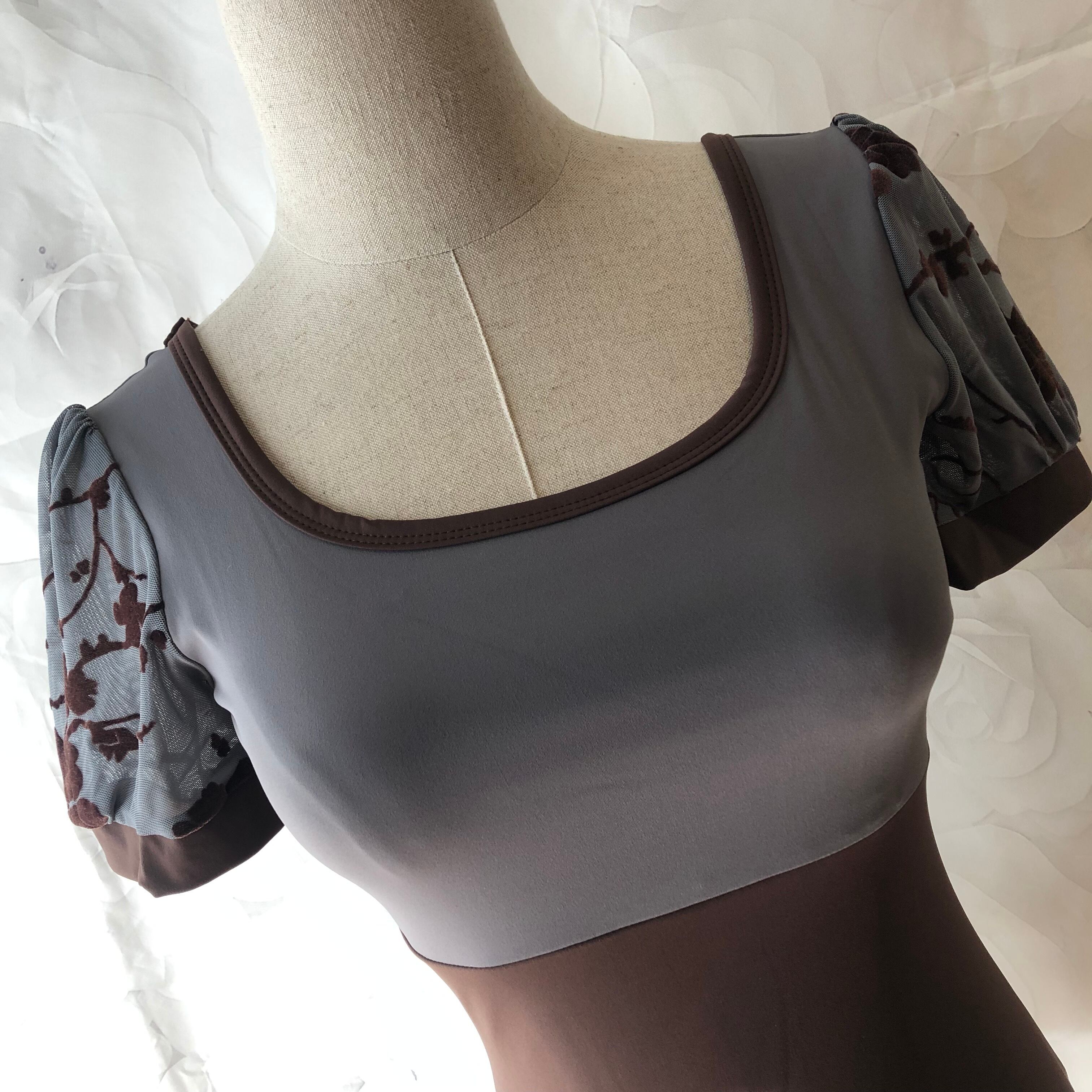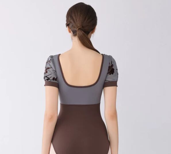 【再入荷】フラワースリーブレオタード グレー×ブラウン