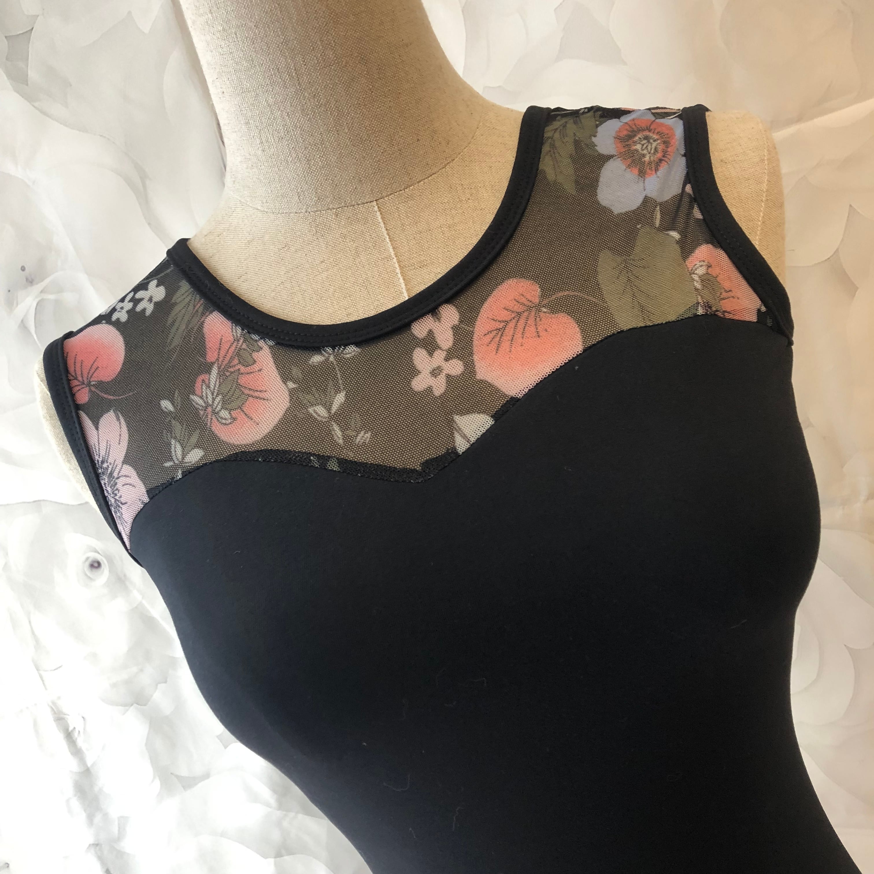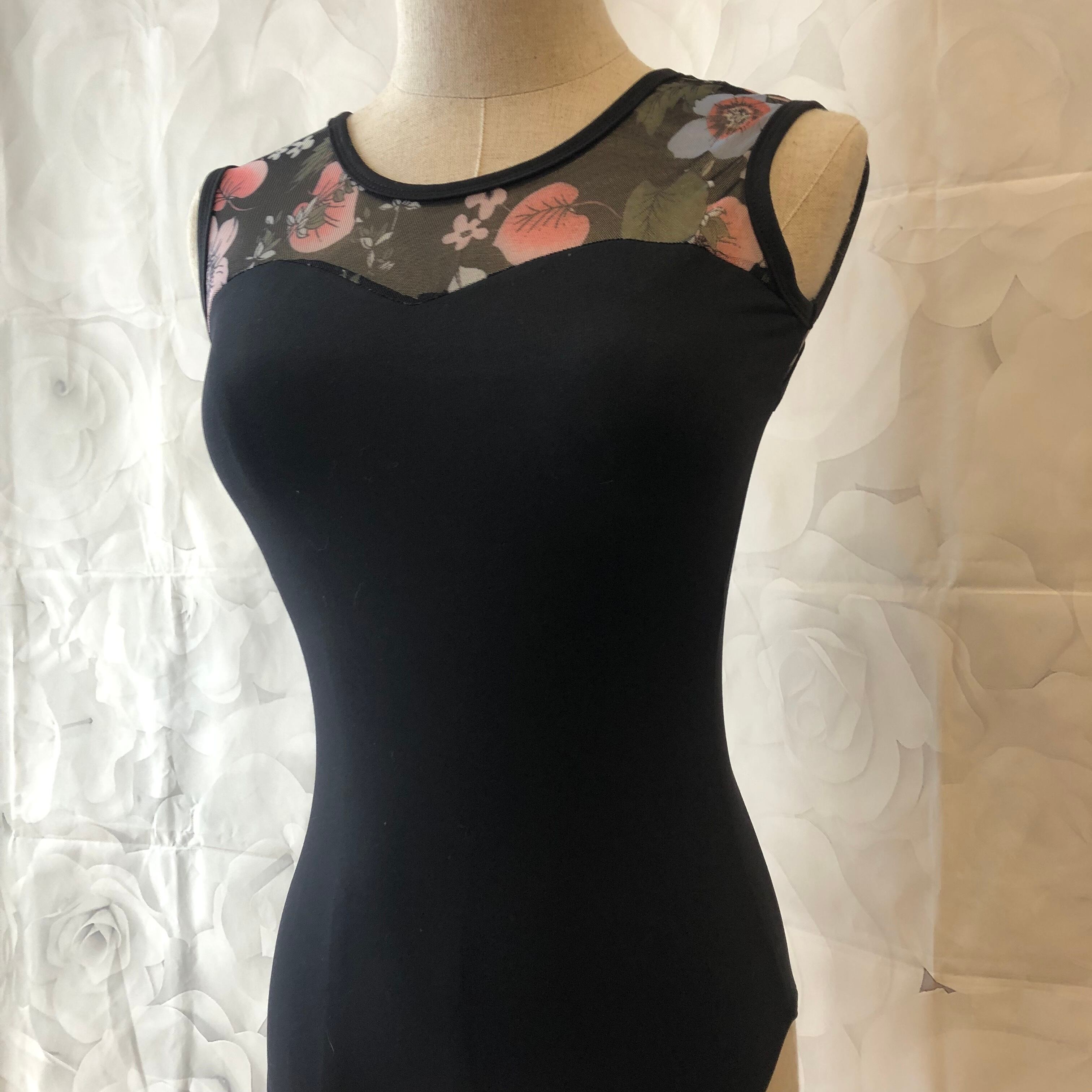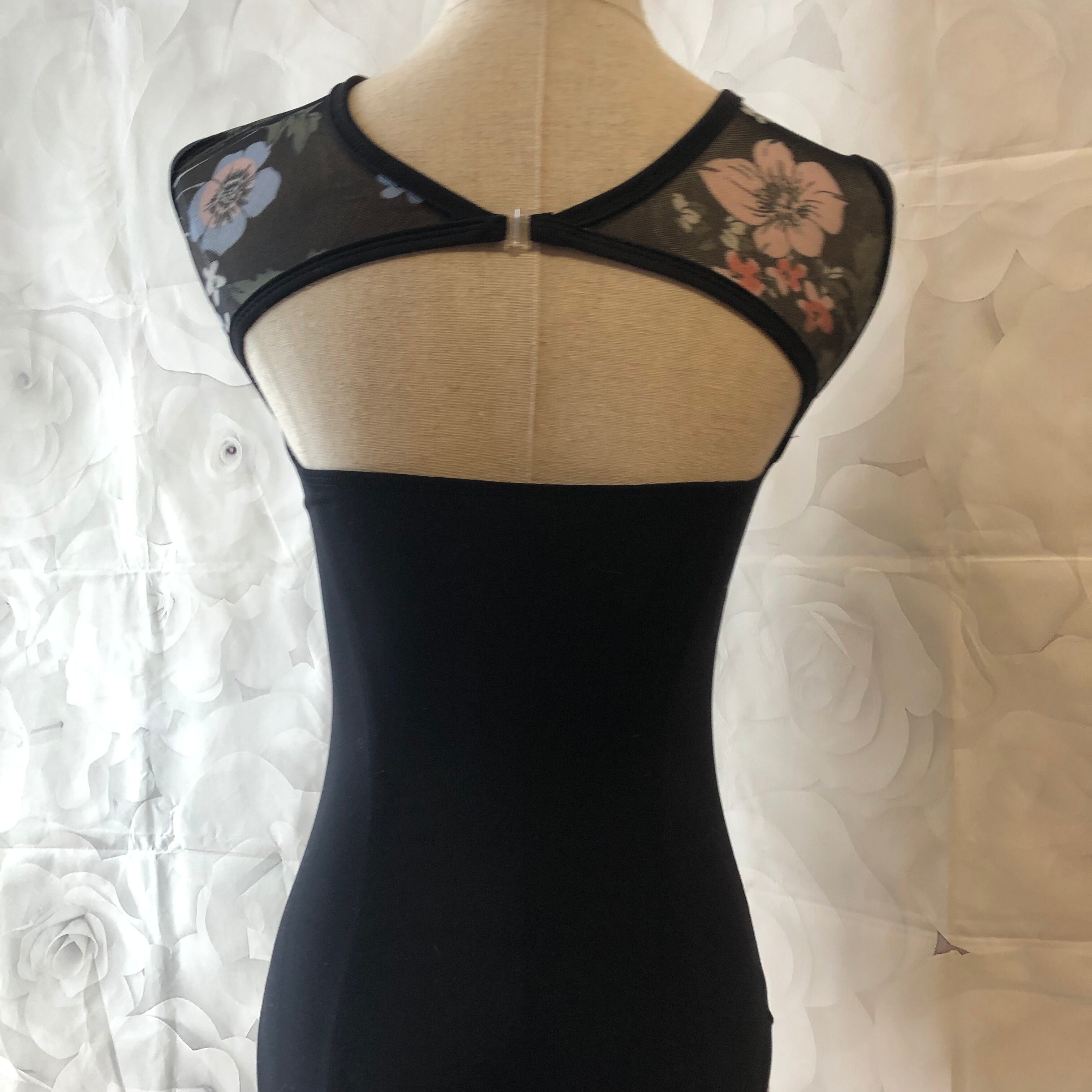 フラワーメッシュ レオタード ブラック