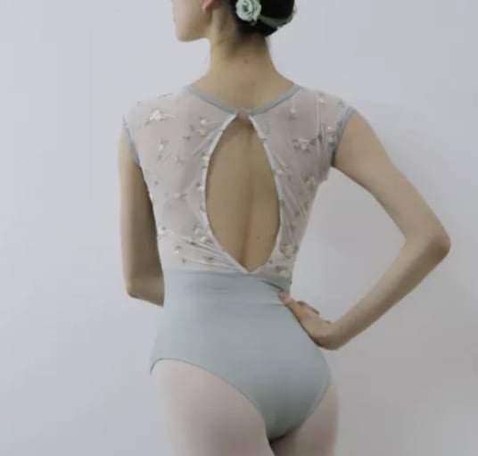 胸元と袖に花柄の刺繍をあしらった上品なレオタード。